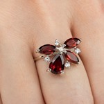 Серебряное кольцо с натуральным гранатом - коллекция Аврора / Палладий. Средний вес украшения с камнями 3.48 гр. Месторождение: Гранат (Кольский п-ов, Россия). Ювелирные вставки: Гранат (Натуральный) груша 6*9 мм., средний вес: 1.45 карат. Гранат (Натуральный) маркиз 4*8 мм., средний вес: 0.61 карат. Белый Нанокристалл круг 2 мм. Все изделия собственного производства и имеют гарантию 12 месяцев, к каждому изделию прилагается паспорт. Арт. 6622PD