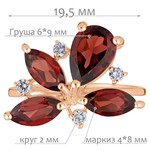Серебряное кольцо с натуральным гранатом - коллекция Аврора / Красное Золото. Средний вес украшения с камнями 3.48 гр. Месторождение: Гранат (Кольский п-ов, Россия). Ювелирные вставки: Гранат (Натуральный) груша 6*9 мм., средний вес: 1.45 карат. Гранат (Натуральный) маркиз 4*8 мм., средний вес: 0.61 карат. Белый Нанокристалл круг 2 мм. Все изделия собственного производства и имеют гарантию 12 месяцев, к каждому изделию прилагается паспорт. Арт. 6622RG
