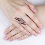 Серебряное кольцо с натуральным гранатом - коллекция Флора. Средний вес изделия с камнями 5.77 гр. Месторождение(я): Гранат (Кольский п-ов, Россия). Гранат (Натуральный) овал 3*5 мм., средний вес: 0.37 карат. Размер лицевой части: 15*44 мм. Все изделия собственного производства, гарантия 12 месяцев. Арт. 7864