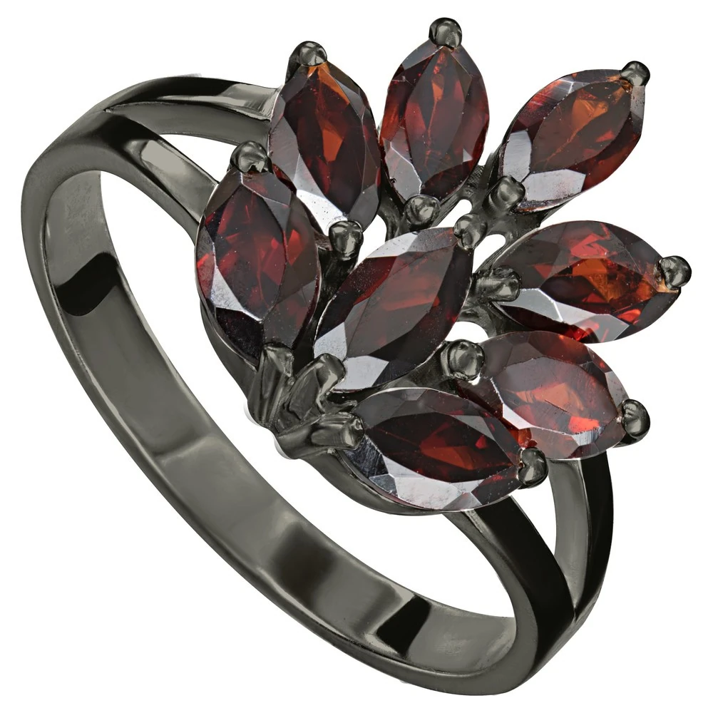 Серебряное кольцо с натуральным гранатом - коллекция Искра, покрытие Черный Родий.