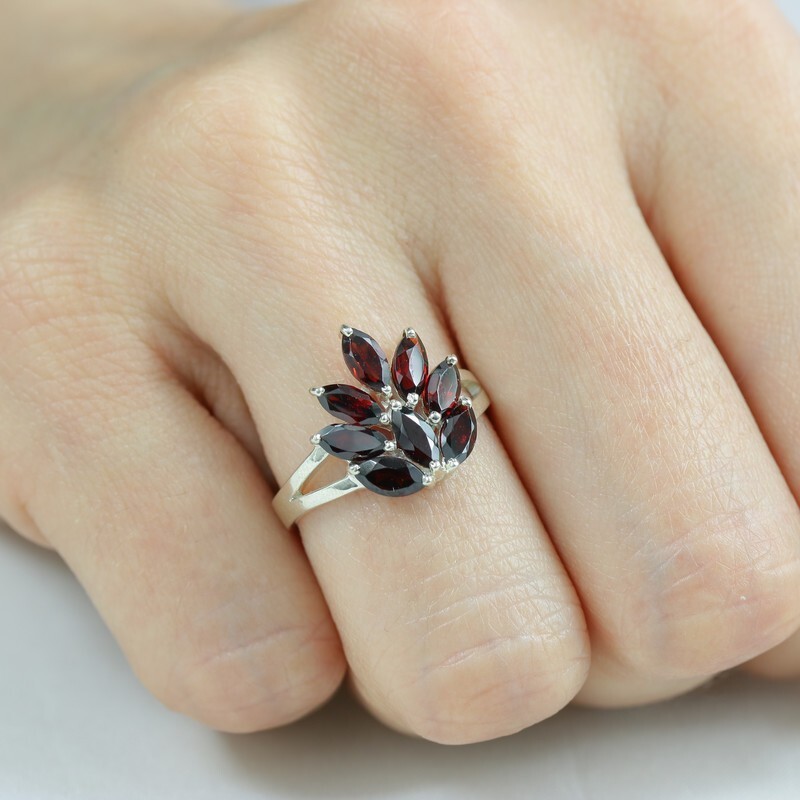 Серебряное кольцо с натуральным гранатом - коллекция Искра. Средний вес изделия с камнями 2.98 гр. Месторождение: Гранат (Кольский п-ов, Россия). Гранат (Натуральный) маркиз 3*6 мм., средний вес: 0.33 карат. Все изделия собственного производства, гарантия 12 месяцев. Арт. 8077