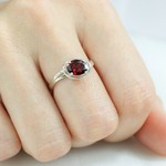 Серебряное кольцо с натуральным гранатом - коллекция Фрейя. Средний вес изделия с камнями 2.23 гр. Месторождение: Гранат (Кольский п-ов, Россия). Гранат (Натуральный) овал 6*8 мм., средний вес: 1.43 карат. Все изделия собственного производства, гарантия 12 месяцев. Арт. 8078 Гранат называют камнем любви. Он дарит своим обладательницам мудрость, а владельцам – решительность и храбрость. Данному камню присущи лечебные свойства, давным-давно он использовался при ранениях. Считалось, что он помогает поддерживать связь с миром мертвых.