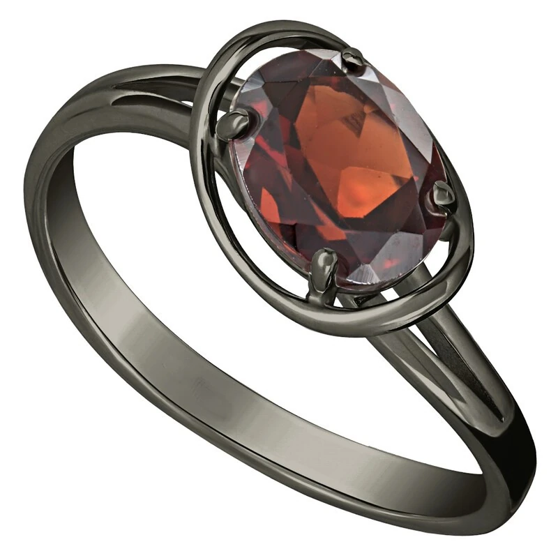 Серебряное кольцо с натуральным гранатом - коллекция Фрейя, покрытие Черный Родий.