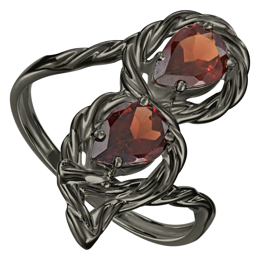 Серебряное кольцо с натуральным гранатом - коллекция Ривьера, покрытие Черный Родий.