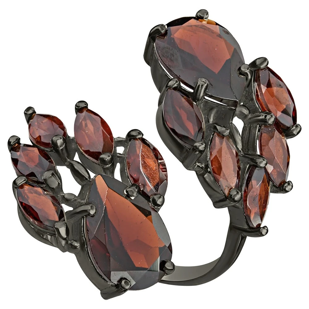 Серебряное кольцо с натуральным гранатом - коллекция Зарница, покрытие Черный Родий.