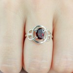 Серебряное кольцо с натуральным гранатом - коллекция Юнона. Средний вес изделия с камнями 2.38 гр. Месторождение: Гранат (Кольский п-ов, Россия). Гранат (Натуральный) овал 6*8 мм., средний вес: 1.43 карат. Все изделия собственного производства, гарантия 12 месяцев. Арт. 8415. Гранат называют камнем любви. Он дарит своим обладательницам мудрость, а владельцам – решительность и храбрость. Данному камню присущи лечебные свойства, давным-давно он использовался при ранениях. Считалось, что он помогает поддерживать связь с миром мертвых.
