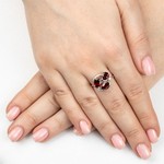 Серебряное кольцо с натуральным гранатом - коллекция Фортуна / покрытие Белый Родий. Средний вес украшения с камнями 2.95 гр. Месторождение: Гранат (Кольский п-ов, Россия) Ювелирные вставки: Гранат (Натуральный) груша 5*7 мм., средний вес: 0.79 карат. Гранат (Натуральный) овал 5*7 мм., средний вес: 0.95 карат. (Натуральный) круг 2 мм., средний вес: 0.06 карат. Все изделия собственного производства и имеют гарантию 12 месяцев. Арт. 8772WR. Гранат называют камнем любви. Он дарит своим обладательницам мудрость, а владельцам – решительность и храбрость. Данному камню присущи лечебные свойства, давным-давно он использовался при ранениях. Считалось, что он помогает поддерживать связь с миром мертвых.