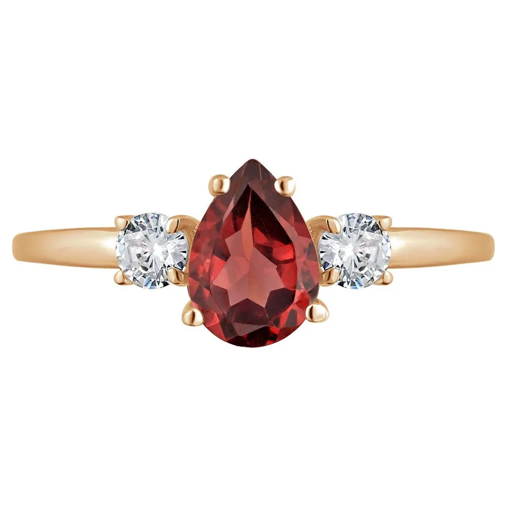 Серебряное кольцо с натуральным гранатом - коллекция Алсу (малая) / Розовое Золото. Средний вес украшения с камнями 1.35 гр. Месторождение: Гранат (Кольский п-ов, Россия). Ювелирные вставки: Гранат (Натуральный) груша 5*7 мм., средний вес: 0.86 карат. Белый Нанокристалл круг 3 мм. Все изделия собственного производства и имеют гарантию 12 месяцев, к каждому изделию прилагается паспорт. Арт. 8813PG
