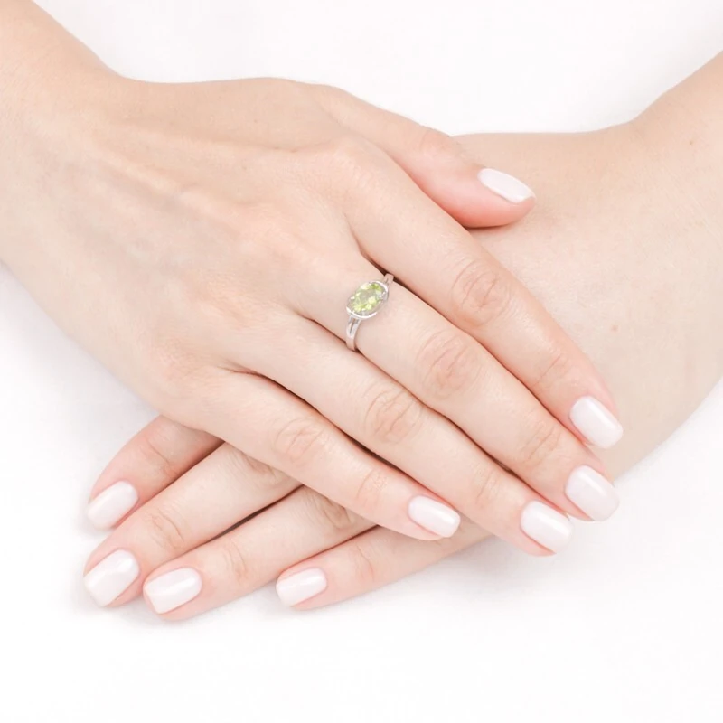 Серебряное кольцо с натуральным хризолитом - коллекция Фрейя. Средний вес изделия с камнем составляет 2.39 гр. Месторождение(я): Хризолит (Якутия, Россия). Хризолит (Натуральный) овал 6*8 мм., средний вес: 1.34 карат. Все изделия собственного производства, гарантия 12 месяцев. Арт. 7734. Хризолит – камень, который называют «вечерним изумрудом» за удивительную способность менять цвет в зависимости от освещения. Считается, что хризолит очень любила Клеопатра. Хризолитовый порошок используется для общего восстановления организма, для очищения пищи от ядов и токсинов и улучшения работы ЖКТ. Кроме того, минерал защищает от опасностей и укрепляет дружеские отношения.