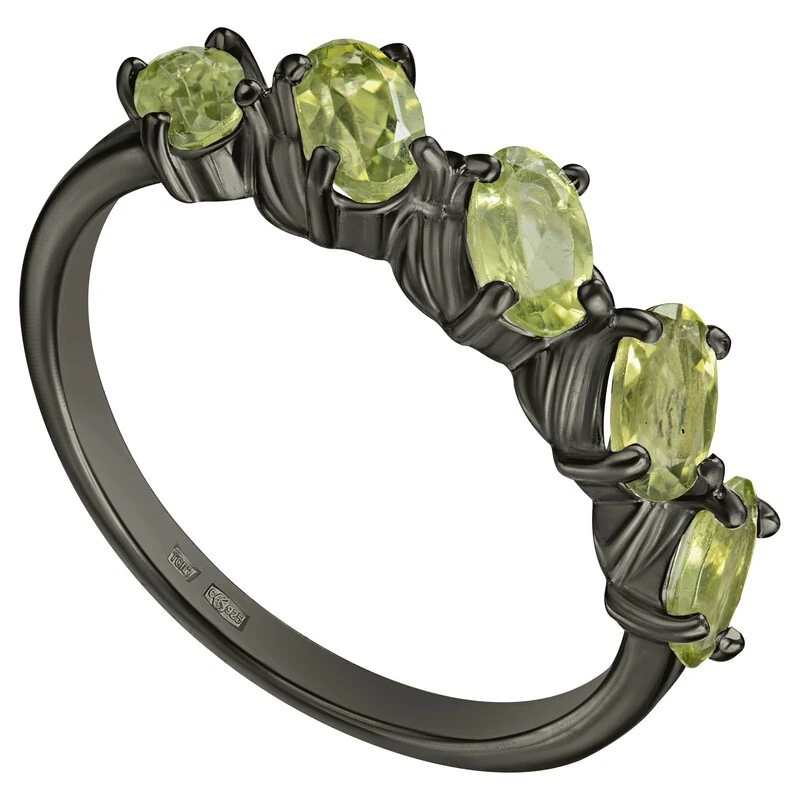 Серебряное кольцо с натуральным хризолитом - коллекция Колосок, покрытие Черный Родий.