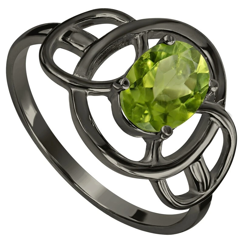 Серебряное кольцо с натуральным хризолитом - коллекция Юнона, покрытие Черный Родий.