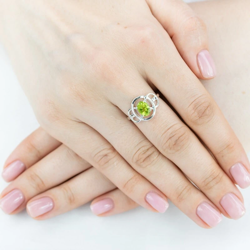 Серебряное кольцо с натуральным хризолитом - коллекция Юнона. Средний вес изделия с камнями 2.35 гр. Месторождение: Хризолит (Якутия, Россия). Хризолит (Натуральный) овал 6*8 мм., средний вес: 1.38 карат. Все изделия собственного производства, гарантия 12 месяцев. Арт. 8411. Хризолит – камень, который называют «вечерним изумрудом» за удивительную способность менять цвет в зависимости от освещения. Считается, что хризолит очень любила Клеопатра. Хризолитовый порошок используется для общего восстановления организма, для очищения пищи от ядов и токсинов и улучшения работы ЖКТ. Кроме того, минерал защищает от опасностей и укрепляет дружеские отношения.