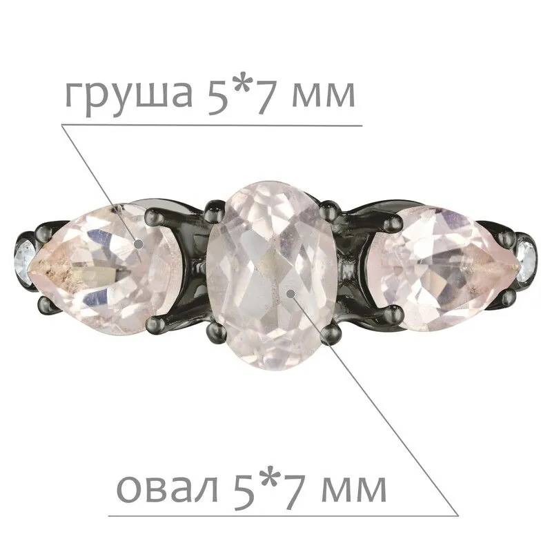 Серебряное кольцо с натуральным розовым кварцем - коллекция Сансара / покрытие Черный Родий.Средний вес украшения с камнями 2.25 гр.Месторождение(я): Розовый кварц (Приполярный Урал, Россия).Ювелирные вставки:Розовый кварц (Натуральный) овал 5*7 мм., средний вес: 0.9 карат.Розовый кварц (Натуральный) груша 5*7 мм., средний вес: 0.76 карат.Белый Нанокристалл круг 2 мм., средний вес: 0.06 карат.Все изделия собственного производства и имеют гарантию 12 месяцев. Арт. 8646BR. Розовый кварц – камень сердца. Такое название он получил за способность приносить умиротворение и любовь. Он дарит сочувствие и глубокое понимание гармонии мира. Не обделён он и лечебными свойствами. Это талисман для привлечения в жизнь глубоких чувств и обретения семейного счастья.