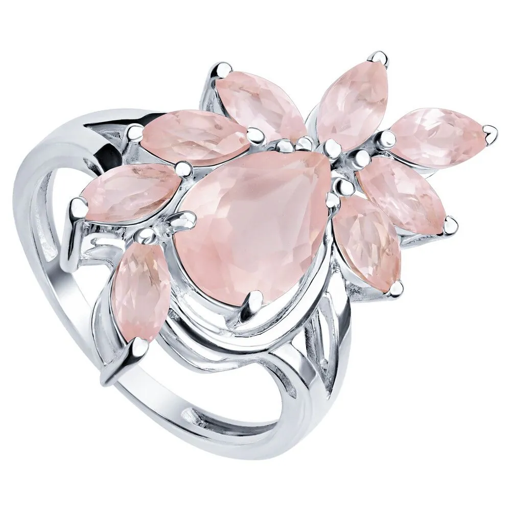 Кольцо серебро 925-пробы, камень натуральный кварц, кварц розовый - размер 18 Lazurit Online КОД: 8924AG180