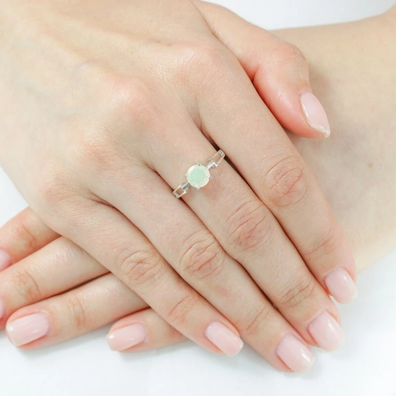 Серебряное кольцо с натуральным опалом (Экстра) - коллекция Классик. Средний вес изделия с камнями 1.88 гр. Месторождение: Опал (Эфиопия). Опал (Натуральный) круг 7 мм., средний вес: 0.61 карат. Все изделия собственного производства, гарантия 12 месяцев. Арт. 8181