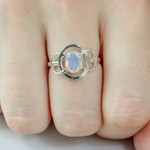 Серебряное кольцо с натуральным опалом - коллекция Юнона. Средний вес изделия с камнями 2.41 гр. Месторождение: Опал (Эфиопия). Опал (Натуральный) овал 6*8 мм., средний вес: 0.51 карат. Все изделия собственного производства, гарантия 12 месяцев. Арт. 8414. Опал – это благородный камень, известный ещё с древности. Ему приписывали разнообразные магические свойства. Окраска опала многовариантна, выделяют более ста типов. Он помогал справиться с порчей и сглазом, защищал от негативной энергетики, способствовал излечению мигреней. Как талисман для ребенка, становился защитником от дурных сил и заболеваний.