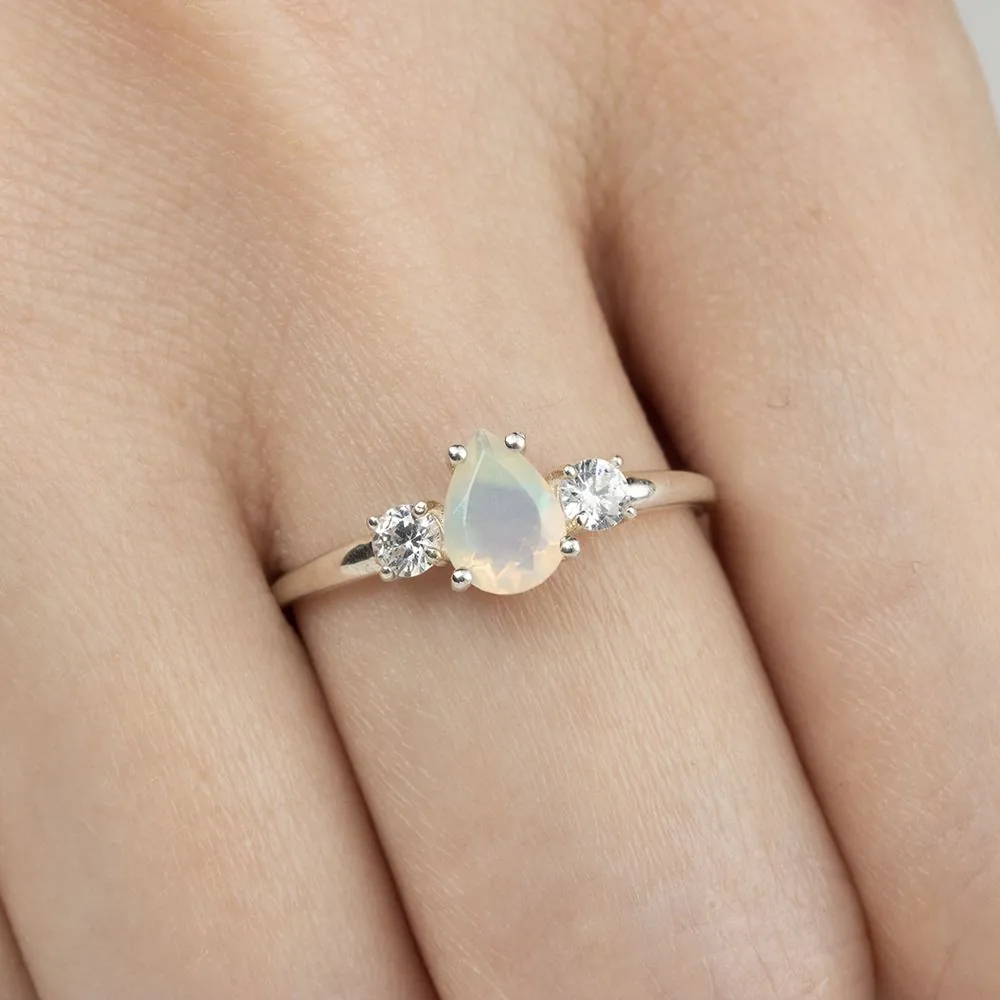 Серебряное кольцо с натуральным опалом (2 кл.) - коллекция Алсу (малая) / Красное Золото. Средний вес украшения с камнями 1.05 гр. Месторождение: Опал (Эфиопия). Ювелирные вставки: Опал (Натуральный) груша 5*7 мм., средний вес: 0.41 карат. Белый Нанокристалл круг 3 мм. Все изделия собственного производства и имеют гарантию 12 месяцев, к каждому изделию прилагается паспорт. Арт. 8914RG