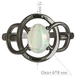 Серебряное кольцо с натуральным опалом (каб.) - коллекция Юнона / Черный Родий. Средний вес украшения с камнями 2.1 гр. Месторождение: Опал (Эфиопия). Ювелирные вставки: Опал (Натуральный) овал 6*8 мм., средний вес: 0.75 карат. Все изделия собственного производства и имеют гарантию 12 месяцев, к каждому изделию прилагается паспорт. Арт. 8920BR