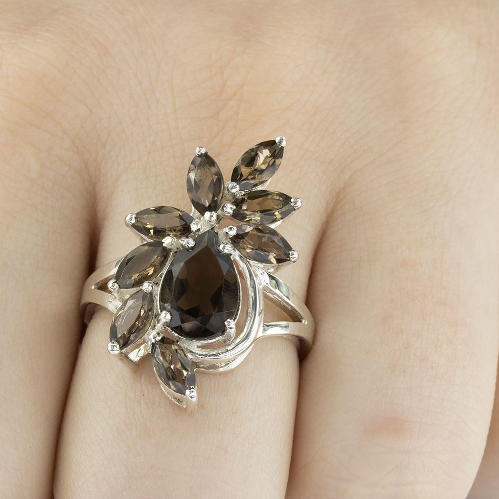 Серебряное кольцо "Элегия" с натуральным раухтопазом (дымчатый кварц) , без покрытия. Средний вес украшения с камнями 3,43 гр. Месторождение(я) камней: Раухтопаз (Дымчатый кварц) (м-ние Додо ХМАО, Россия). Раухтопаз (Натуральный) груша: 7*10 мм., средний вес 1,85 карат. Раухтопаз (Натуральный) маркиз: 3*6 мм., средний вес 0,24 карат. Размер лицевой части: 15*23 мм. Все изделия собственного производства и имеют гарантию 12 месяцев. Арт. 6610NP. Раухтопаз – это разновидность кварца. Ранее он использовался в ювелирных украшениях, при вышивке картин, для магических ритуалов. Его влияние на владельца сразу становится заметно — человек успокаивается и становится рассудительным, легче выходит из депрессивных состояний. Часто использовался в приворотах, заговорах или для связи с миром духов.