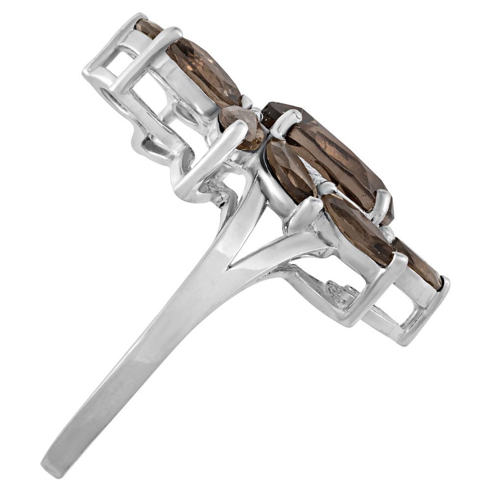 Серебряное кольцо "Элегия" с натуральным раухтопазом (дымчатый кварц) , покрытие Белый Родий. Средний вес украшения с камнями 3,43 гр. Месторождение(я) камней: Раухтопаз (Дымчатый кварц) (м-ние Додо ХМАО, Россия). Раухтопаз (Натуральный) груша: 7*10 мм., средний вес 1,85 карат. Раухтопаз (Натуральный) маркиз: 3*6 мм., средний вес 0,24 карат. Размер лицевой части: 15*23 мм. Все изделия собственного производства и имеют гарантию 12 месяцев. Арт. 6610WR. Раухтопаз – это разновидность кварца. Ранее он использовался в ювелирных украшениях, при вышивке картин, для магических ритуалов. Его влияние на владельца сразу становится заметно — человек успокаивается и становится рассудительным, легче выходит из депрессивных состояний. Часто использовался в приворотах, заговорах или для связи с миром духов.