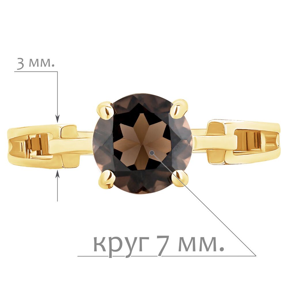 Серебряное кольцо с натуральным раухтопазом - коллекция Классик / Желтое Золото. Средний вес украшения с камнями 2.15 гр. Месторождение: Раухтопаз (Дымчатый кварц) (м-ие Додо ХМАО, Россия). Ювелирные вставки: Раухтопаз (Натуральный) круг 7 мм., средний вес: 1.29 карат. Все изделия собственного производства и имеют гарантию 12 месяцев, к каждому изделию прилагается паспорт. Арт. 6634YG