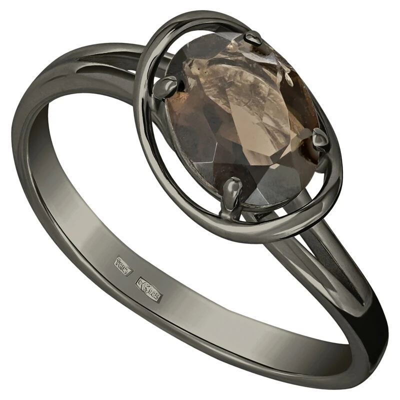 Серебряное кольцо с натуральным раухтопазом (дымчатый кварц) - коллекция Фрейя, покрытие Черный Родий. Средний вес украшения с камнем составляет 2.35 гр. Месторождение(я): Раухтопаз (Дымчатый кварц) (м-ие Додо ХМАО, Россия).