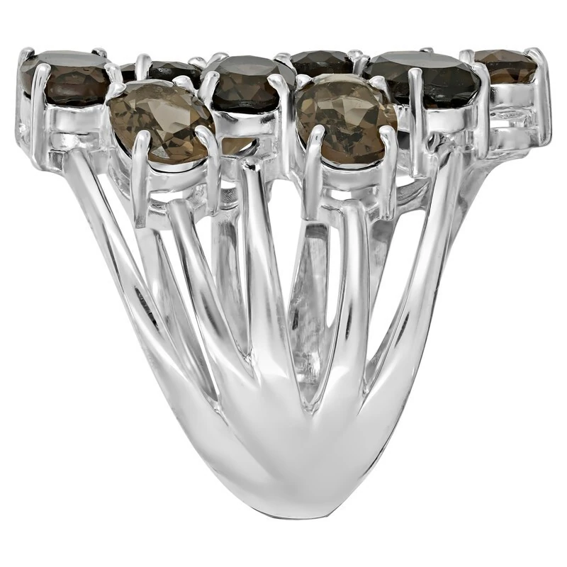 Серебряное кольцо с натуральным раухтопазом (дымчатый кварц) - коллекция Аэлита. Средний вес изделия с камнями 9.81 гр. Месторождение: Раухтопаз (Дымчатый кварц) (м-ие Додо ХМАО, Россия). Раухтопаз (Натуральный) овал 5*7 мм., средний вес: 0.75 карат. Все изделия собственного производства, гарантия 12 месяцев. Арт. 7838. Раухтопаз – это разновидность кварца. Ранее он использовался в ювелирных украшениях, при вышивке картин, для магических ритуалов. Его влияние на владельца сразу становится заметно — человек успокаивается и становится рассудительным, легче выходит из депрессивных состояний. Часто использовался в приворотах, заговорах или для связи с миром духов.