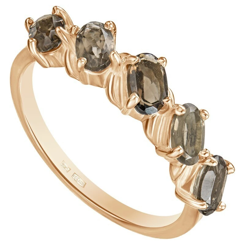 Серебряное кольцо с натуральным раухтопазом - коллекция Колосок. Серебряное кольцо 925 пробы с покрытием розовое золото. Цвет покрытия соответствует швейцарскому цветовому стандарту NIHS -4N и цвету розового золота 585 в России. На последней фотографии мы разместили сравнительную фотографию 3 цвета золотого покрытия. Помимо предания золотого цвета Вашему изделию, тонкий слой золота защищает от окисления. Для более стойкого эффекта золочения и долговечности покрытия мы дополнительно наносим подслой палладия (Pd). Средний вес изделия с камнями 2.16 гр. Месторождение: Раухтопаз (Ильменские горы, Россия). Раухтопаз (Натуральный) овал 3*5 мм., средний вес: 0.22 карат. Все изделия собственного производства, гарантия 12 месяцев. Арт. 7994
