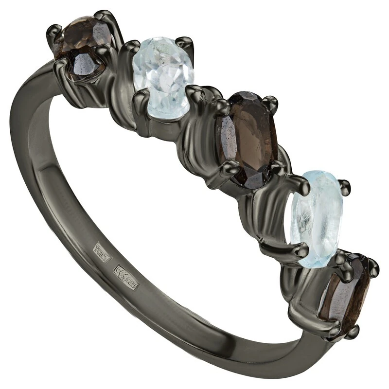 Серебряное кольцо с натуральными камнями раухтопаз и топаз - коллекция Колосок, покрытие Черный Родий.