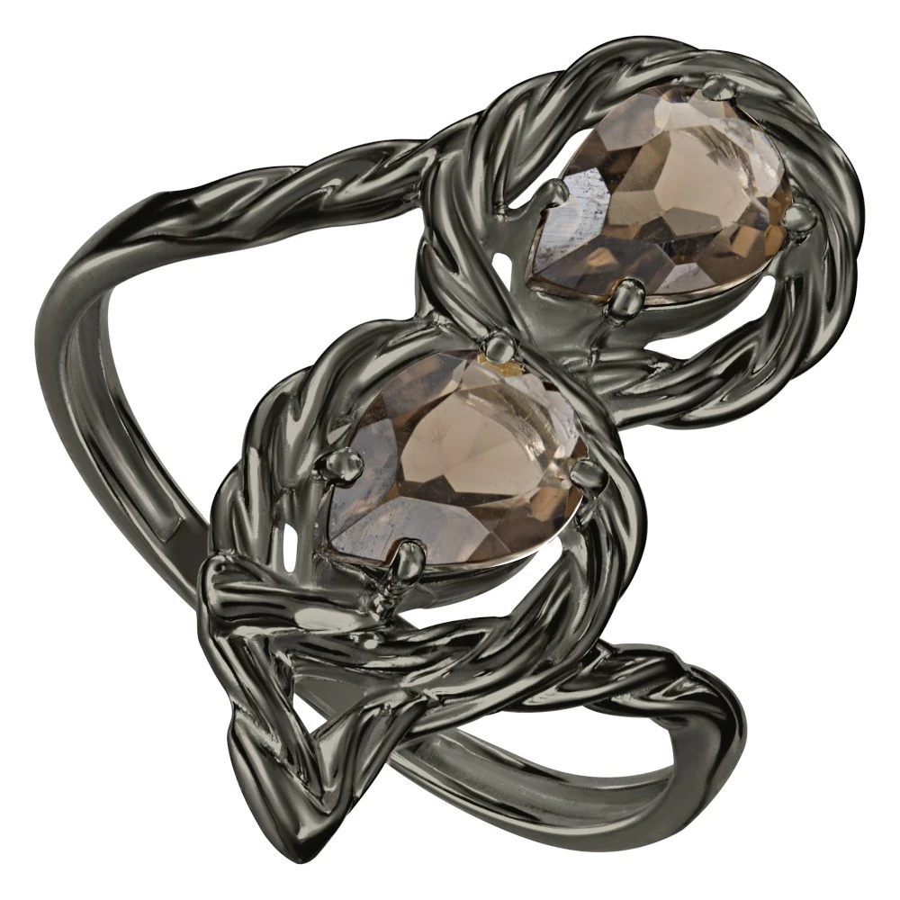 Серебряное кольцо с натуральным раухтопазом - коллекция Ривьера, покрытие Черный Родий.