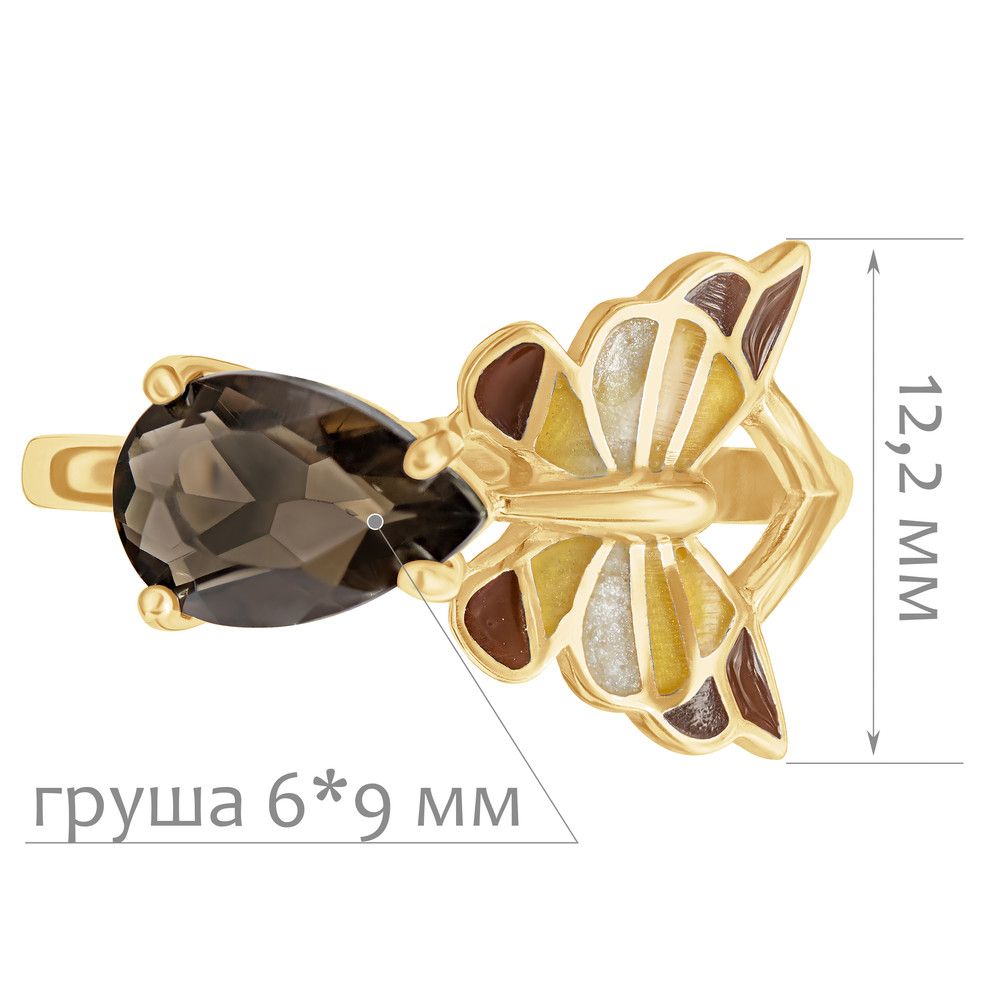 Серебряное кольцо с натуральным раухтопазом и эмалью - коллекция Бабочка, покрытие Желтое Золото. Средний вес украшения с камнями 2.41 гр. Месторождение: Раухтопаз (Дымчатый кварц) (м-ние Додо ХМАО, Россия). Раухтопаз (Натуральный) груша 6*9 мм., средний вес: 1.16 карат. Все изделия собственного производства и имеют гарантию 12 месяцев, к каждому изделию прилагается паспорт. Арт. 8453YG. Раухтопаз – это разновидность кварца. Ранее он использовался в ювелирных украшениях, при вышивке картин, для магических ритуалов. Его влияние на владельца сразу становится заметно — человек успокаивается и становится рассудительным, легче выходит из депрессивных состояний. Часто использовался в приворотах, заговорах или для связи с миром духов.