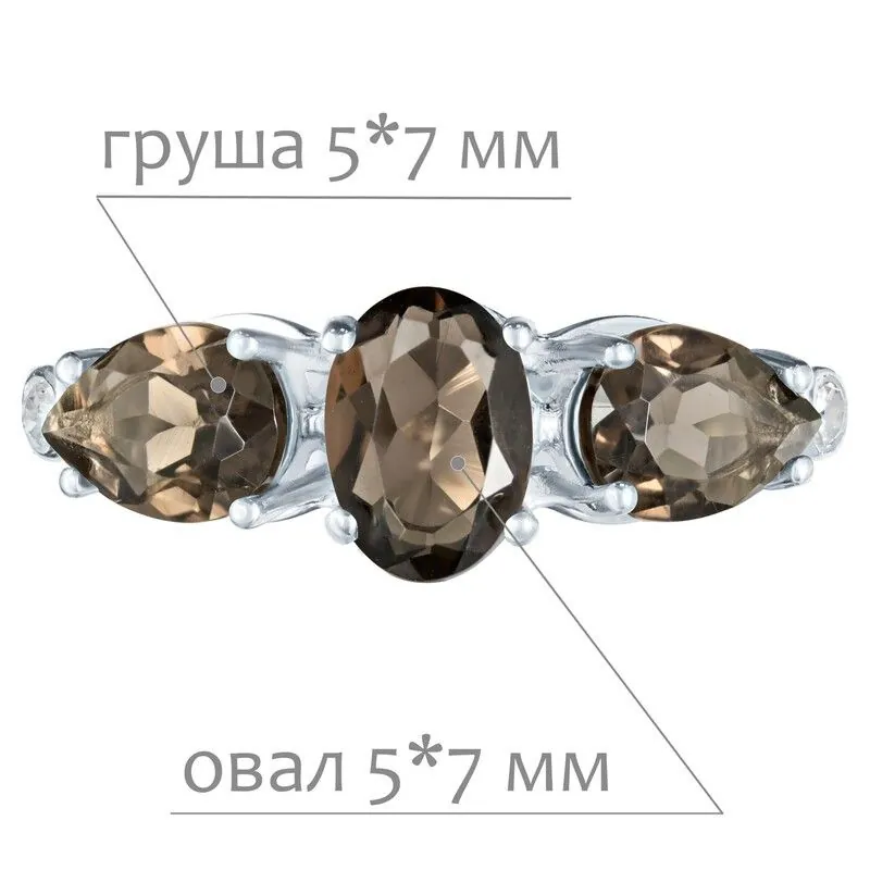 Серебряное кольцо с натуральным раухтопазом - коллекция Сансара / покрытие Чистое Серебро.Средний вес украшения с камнями 2.21 гр.Месторождение(я): Раухтопаз (Дымчатый кварц) (м-ие Додо ХМАО, Россия).Ювелирные вставки:Раухтопаз (Натуральный) овал 5*7 мм., средний вес: 0.75 карат.Раухтопаз (Натуральный) груша 5*7 мм., средний вес: 0.63 карат.Белый Нанокристалл круг 2 мм., средний вес: 0.06 карат.Все изделия собственного производства и имеют гарантию 12 месяцев. Арт. 8647AG. Раухтопаз – это разновидность кварца. Ранее он использовался в ювелирных украшениях, при вышивке картин, для магических ритуалов. Его влияние на владельца сразу становится заметно — человек успокаивается и становится рассудительным, легче выходит из депрессивных состояний. Часто использовался в приворотах, заговорах или для связи с миром духов.