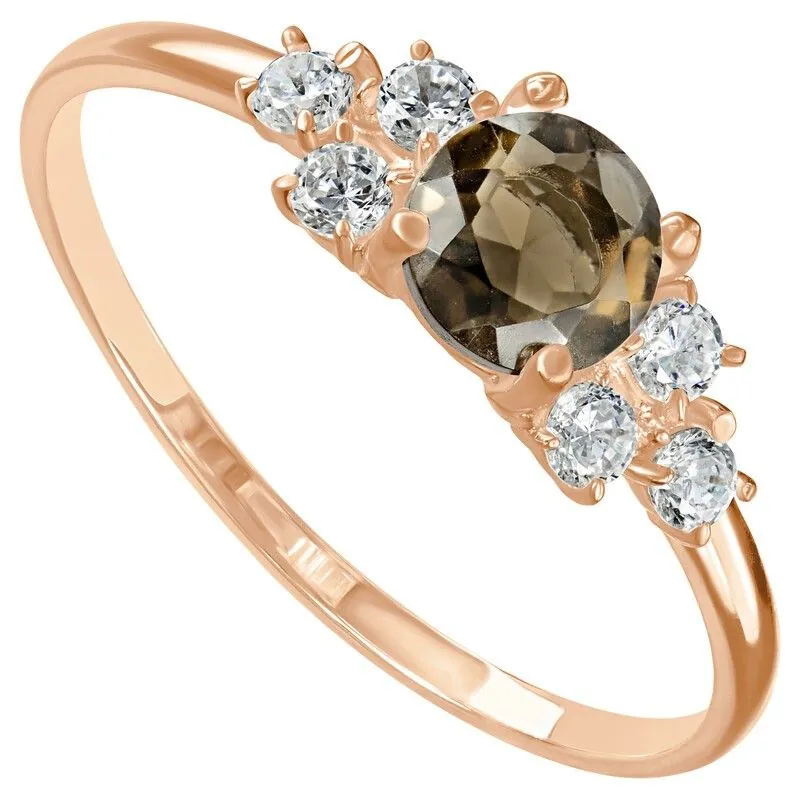 Серебряное кольцо с натуральным раухтопазом - коллекция Нова / покрытие Красное Золото.Средний вес украшения с камнями 1.25 гр.Месторождение(я): Раухтопаз (Дымчатый кварц) (м-ие Додо ХМАО, Россия).Ювелирные вставки:Раухтопаз (Натуральный) круг 5 мм., средний вес: 0.41 карат.Белый Нанокристалл круг 2 мм., средний вес: 0.06 карат.Все изделия собственного производства и имеют гарантию 12 месяцев. Арт. 8665RG. Раухтопаз – это разновидность кварца. Ранее он использовался в ювелирных украшениях, при вышивке картин, для магических ритуалов. Его влияние на владельца сразу становится заметно — человек успокаивается и становится рассудительным, легче выходит из депрессивных состояний. Часто использовался в приворотах, заговорах или для связи с миром духов.