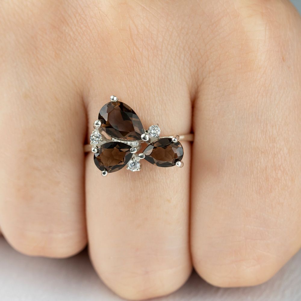 Серебряное кольцо с натуральным раухтопазом - коллекция Капель / покрытие Чистое Серебро. Средний вес украшения с камнями 3.1 гр. Месторождение: Раухтопаз (Дымчатый кварц) (м-ие Додо ХМАО, Россия) Ювелирные вставки: Раухтопаз (Натуральный) груша 6*9 мм., средний вес: 1.17 карат. Раухтопаз (Натуральный) груша 5*7 мм., средний вес: 0.63 карат. Все изделия собственного производства и имеют гарантию 12 месяцев. Арт. 8767AG. Раухтопаз – это разновидность кварца. Ранее он использовался в ювелирных украшениях, при вышивке картин, для магических ритуалов. Его влияние на владельца сразу становится заметно — человек успокаивается и становится рассудительным, легче выходит из депрессивных состояний. Часто использовался в приворотах, заговорах или для связи с миром духов.