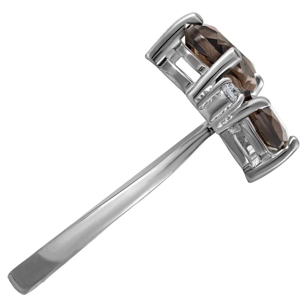 Серебряное кольцо с натуральным раухтопазом - коллекция Капель / покрытие Палладий. Средний вес украшения с камнями 3.12 гр. Месторождение: Раухтопаз (Дымчатый кварц) (м-ие Додо ХМАО, Россия) Ювелирные вставки: Раухтопаз (Натуральный) груша 6*9 мм., средний вес: 1.17 карат. Раухтопаз (Натуральный) груша 5*7 мм., средний вес: 0.63 карат. Все изделия собственного производства и имеют гарантию 12 месяцев. Арт. 8767PD. Раухтопаз – это разновидность кварца. Ранее он использовался в ювелирных украшениях, при вышивке картин, для магических ритуалов. Его влияние на владельца сразу становится заметно — человек успокаивается и становится рассудительным, легче выходит из депрессивных состояний. Часто использовался в приворотах, заговорах или для связи с миром духов.