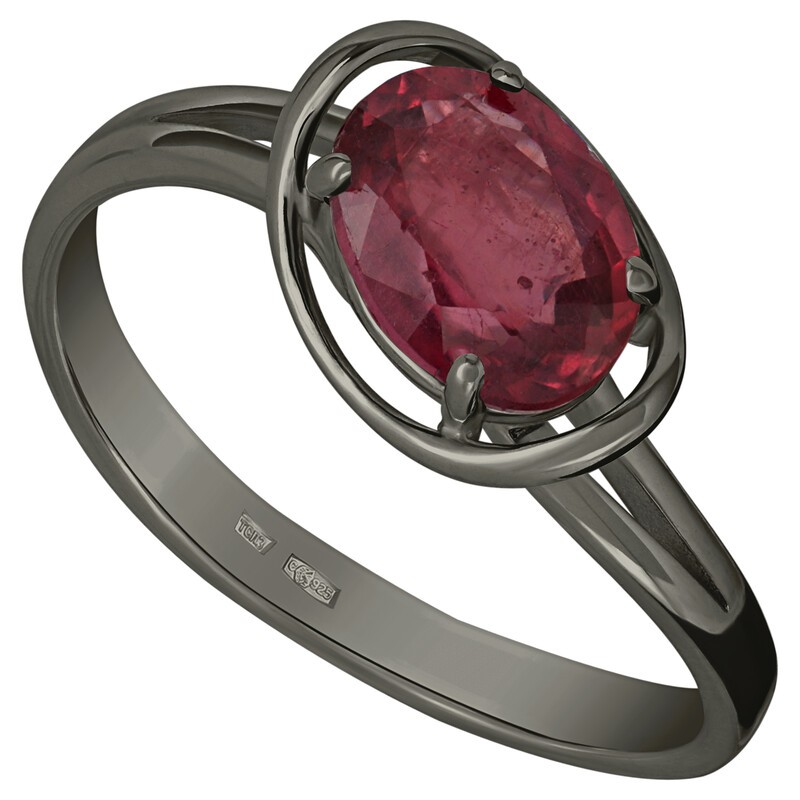 Серебряное кольцо с натуральным рубином - коллекция Фрейя, покрытие Черный Родий. Средний вес украшения с камнем составляет 2.33 гр. Месторождение(я): Рубин (Восточная Африка).