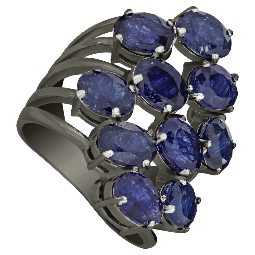 Серебряное кольцо с натуральным сапфиром - коллекция Аэлита, покрытие Черный Родий.