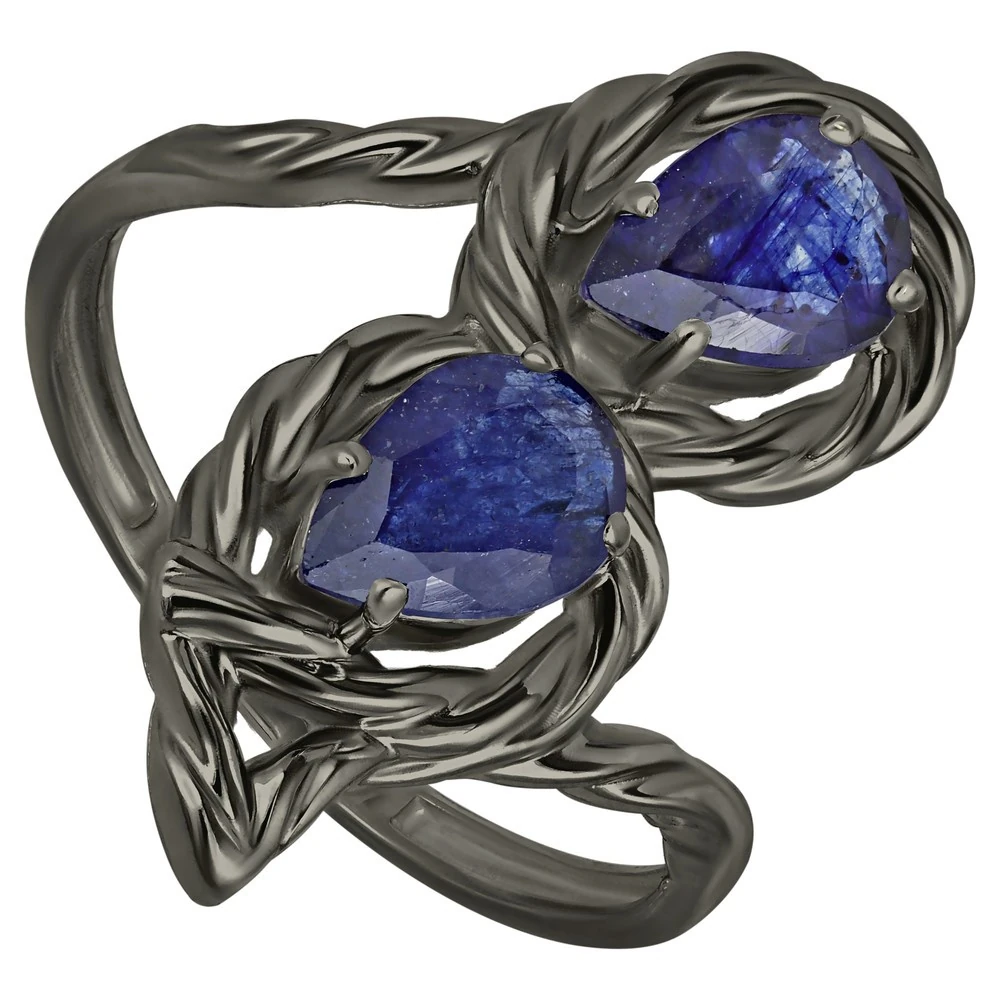 Серебряное кольцо с натуральным сапфиром - коллекция Ривьера, покрытие Черный Родий.
