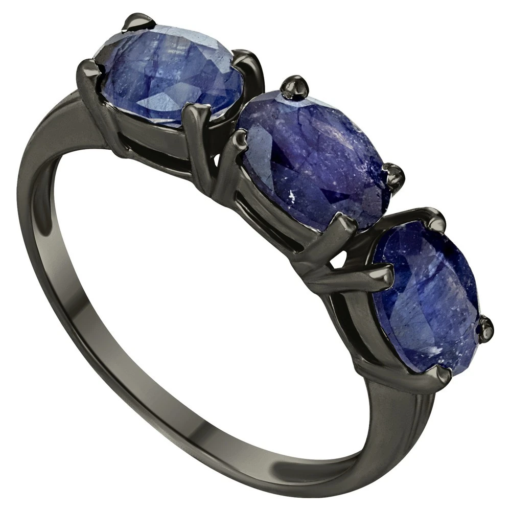 Серебряное кольцо с натуральным сапфиром - коллекция Муза, покрытие Черный Родий.