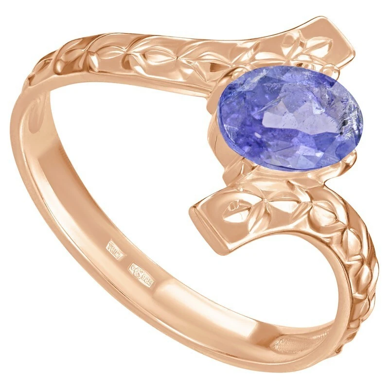 Серебряное кольцо с натуральным танзанитом - коллекция Тея. Серебряное кольцо 925 пробы с покрытием красное золото. Цвет покрытия соответствует швейцарскому цветовому стандарту NIHS -5N и цвету красного золота 585 в России. На последней фотографии мы разместили сравнительную фотографию 3 цвета золотого покрытия. Помимо предания золотого цвета Вашему изделию, тонкий слой золота защищает от окисления. Для более стойкого эффекта золочения и долговечности покрытия мы дополнительно наносим подслой палладия (Pd). Средний вес изделия с камнями 2.35 гр. Месторождение: Танзанит (провинция Аруша, Танзания) Танзанит (Натуральный) овал 5*7 мм., средний вес: 0.89 карат. Все изделия собственного производства, гарантия 12 месяцев. Арт. 8053