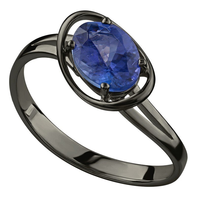 Серебряное кольцо с натуральным танзанитом - коллекция Фрейя, покрытие Черный Родий.