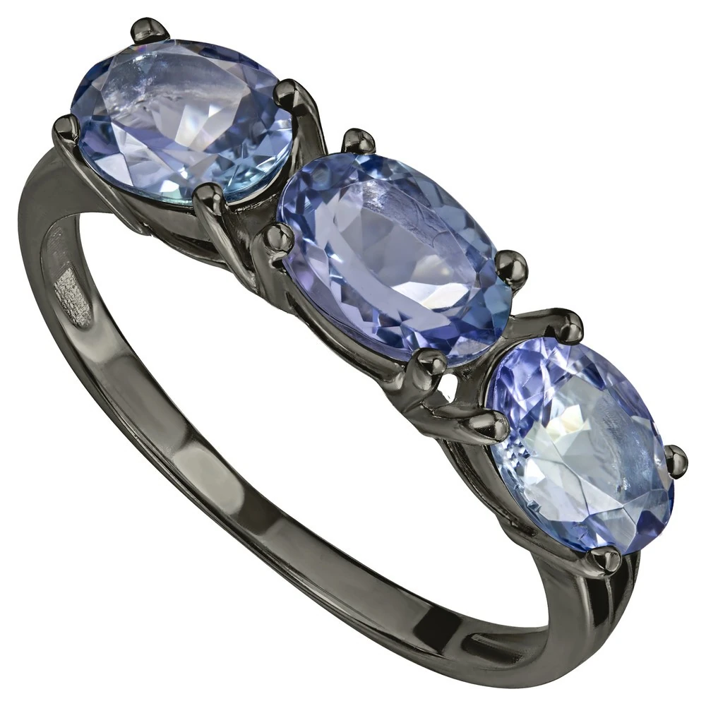 Серебряное кольцо с натуральным танзанитом (2 класс) - коллекция Муза, покрытие Черный Родий.