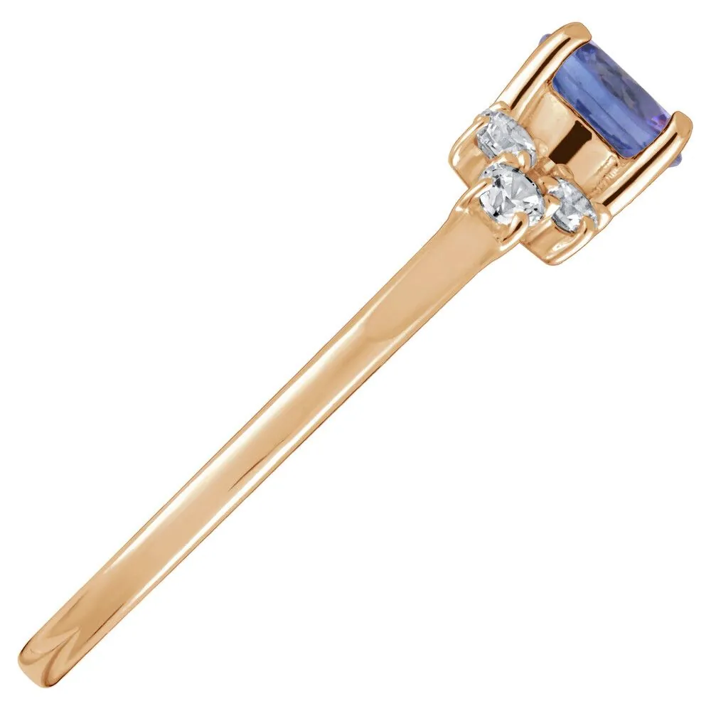 Серебряное кольцо с натуральным танзанитом (2 кл.) - коллекция Нова / Розовое Золото. Средний вес украшения с камнями 1.12 гр. Месторождение: Танзанит (провинция Аруша, Танзания). Ювелирные вставки: Танзанит (Натуральный) круг 5 мм., средний вес: 0.51 карат. Белый Нанокристалл круг 2 мм. Все изделия собственного производства и имеют гарантию 12 месяцев, к каждому изделию прилагается паспорт. Арт. 8903PG