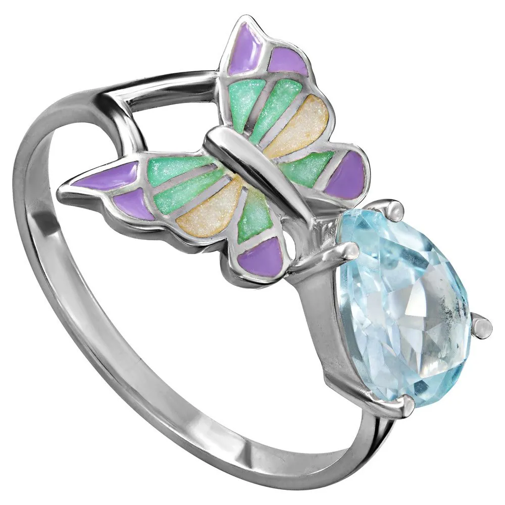 Серебряное кольцо с натуральным голубым топазом и эмалью - коллекция Бабочка, покрытие Палладий. Средний вес украшения с камнями 2.35 гр. Месторождение: Топаз (Ильменские горы, Россия). Топаз (Натуральный) груша 6*9 мм., средний вес: 1.59 карат. Все изделия собственного производства и имеют гарантию 12 месяцев, к каждому изделию прилагается паспорт. Арт. 8450PD. Топаз – камень, который отличаются особенным блеском и многообразной гаммой. Сверхтвёрдый и сверхпрочный, он наделен и лечебными, и магическими свойствами. Считалось, что амулет из топаза способен благоприятно повлиять на зачатие, потому часто дарился бездетным парам. Это камень дружбы и благоразумия, радости, оптимизма и надежды.