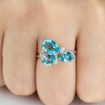 Серебряное кольцо с натуральным голубым топазом (Swiss) - коллекция Капель / покрытие Белый Родий. Средний вес украшения с камнями 3.04 гр. Месторождение: Топаз (Намибия) Ювелирные вставки: Топаз (Натуральный) груша 6*9 мм., средний вес: 1.45 карат. Топаз (Натуральный) груша 5*7 мм., средний вес: 0.78 карат. Все изделия собственного производства и имеют гарантию 12 месяцев. Арт. 8768WR. Топаз – камень, который отличаются особенным блеском и многообразной гаммой. Сверхтвёрдый и сверхпрочный, он наделен и лечебными, и магическими свойствами. Считалось, что амулет из топаза способен благоприятно повлиять на зачатие, потому часто дарился бездетным парам. Это камень дружбы и благоразумия, радости, оптимизма и надежды.