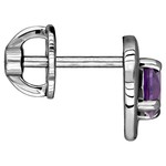 Серебряные серьги гвоздики (пусеты) с натуральным аметистом (темным) - Сердце / покрытие Палладий.