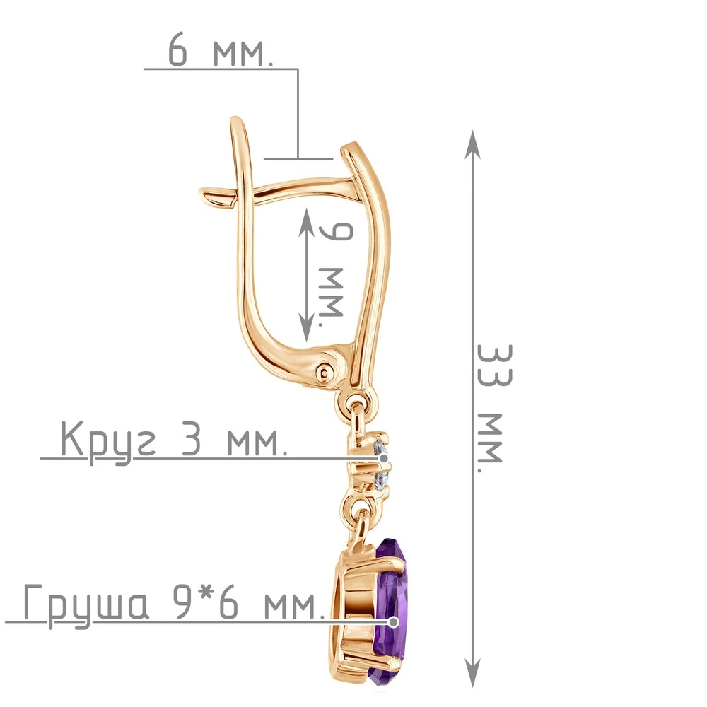Серебряные серьги с натуральным аметистом (темным) - коллекция Алсу (большая) / Розовое Золото.