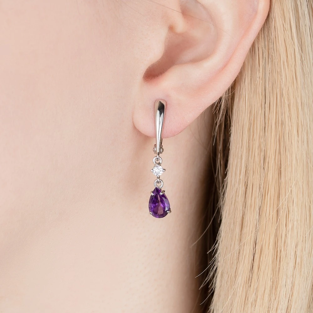 Серьги серебро 925-пробы, камень натуральный аметист, Lazurit Online КОД: 8821PG