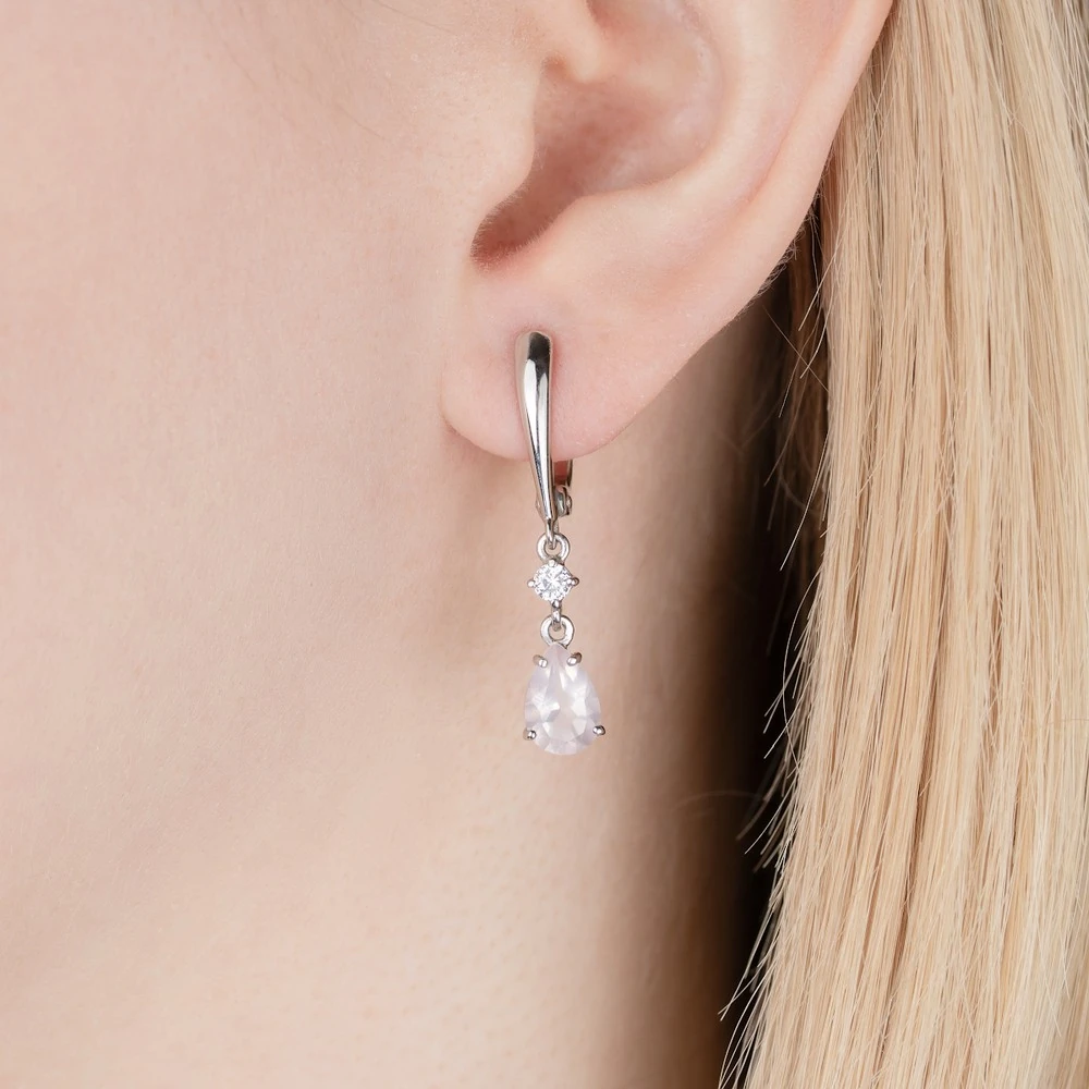 Серебряные серьги с натуральным розовым кварцем - коллекция Алсу (большая) / Без покрытия.
