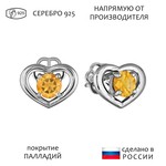 Серебряные серьги гвоздики (пусеты) с натуральным цитрином - Сердце / покрытие Палладий.